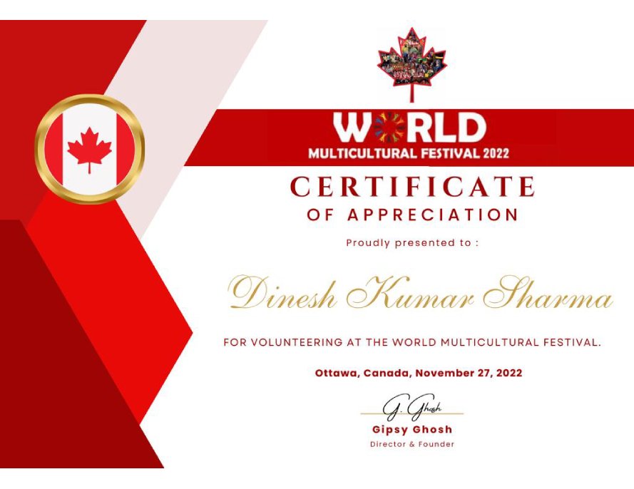 Dinesh has performed for many big and small events so far. The most recent achievements include his performance in The Great India Festival (TGIF) and World Multi- Cultural Festival, Ottawa, Canada.